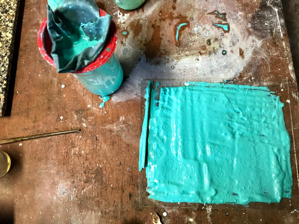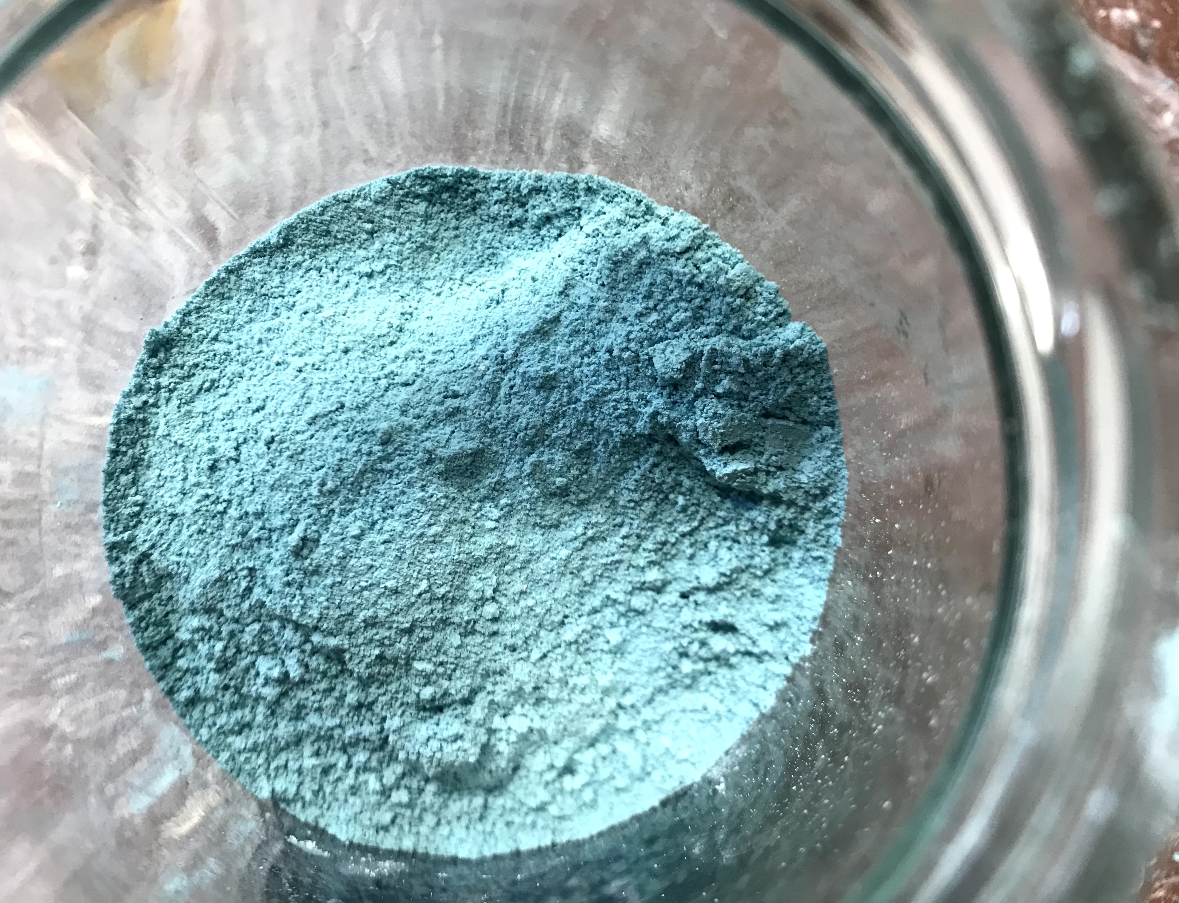 One of the other great green pigments from history is malachite. It makes a soft, cool green. Malachite as a pigment is made up from a basic copper carbonate. Malachite can still be bought, if you know where to look. However, I wanted to try making the artificial version of malachite, which goes under the name green verditer, green bice, or mountain green. Verditer as a term comes from verte di terre, or green of the earth, which is not to be confused with another pigment called terre verte. The names may mean the same thing, but the pigments themselves are very different.