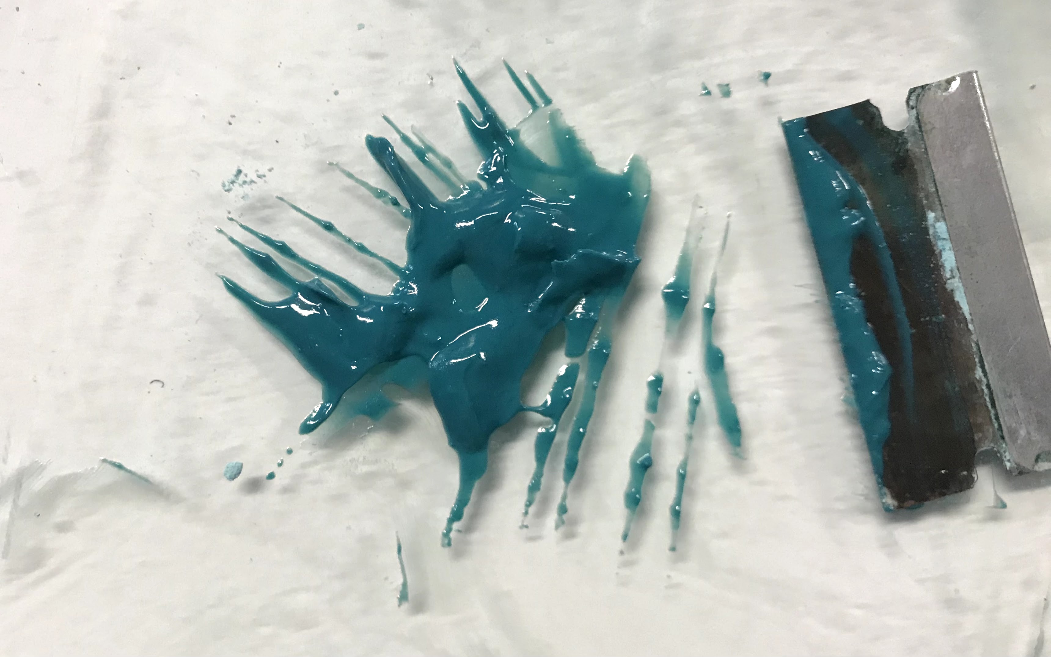 In my first attempt, I used equal amounts of copper sulfate and sodium carbonate. The initial product appeared to be successful. The color was more blue than I thought it should be, but I filtered it and spread it out to dry. Once it dried, the beautiful blue color turned a greyish green with a couple of patches of baby blue. I tried scraping the pigment into two powders based on their colors and made test oil paints out of them. Both pigments made similar colors that actually reminded me of terre verte, because the resulting paint is a warm, brownish green. What I made was not a bad pigment, I saved it and will use it later, but it was not green verditer.