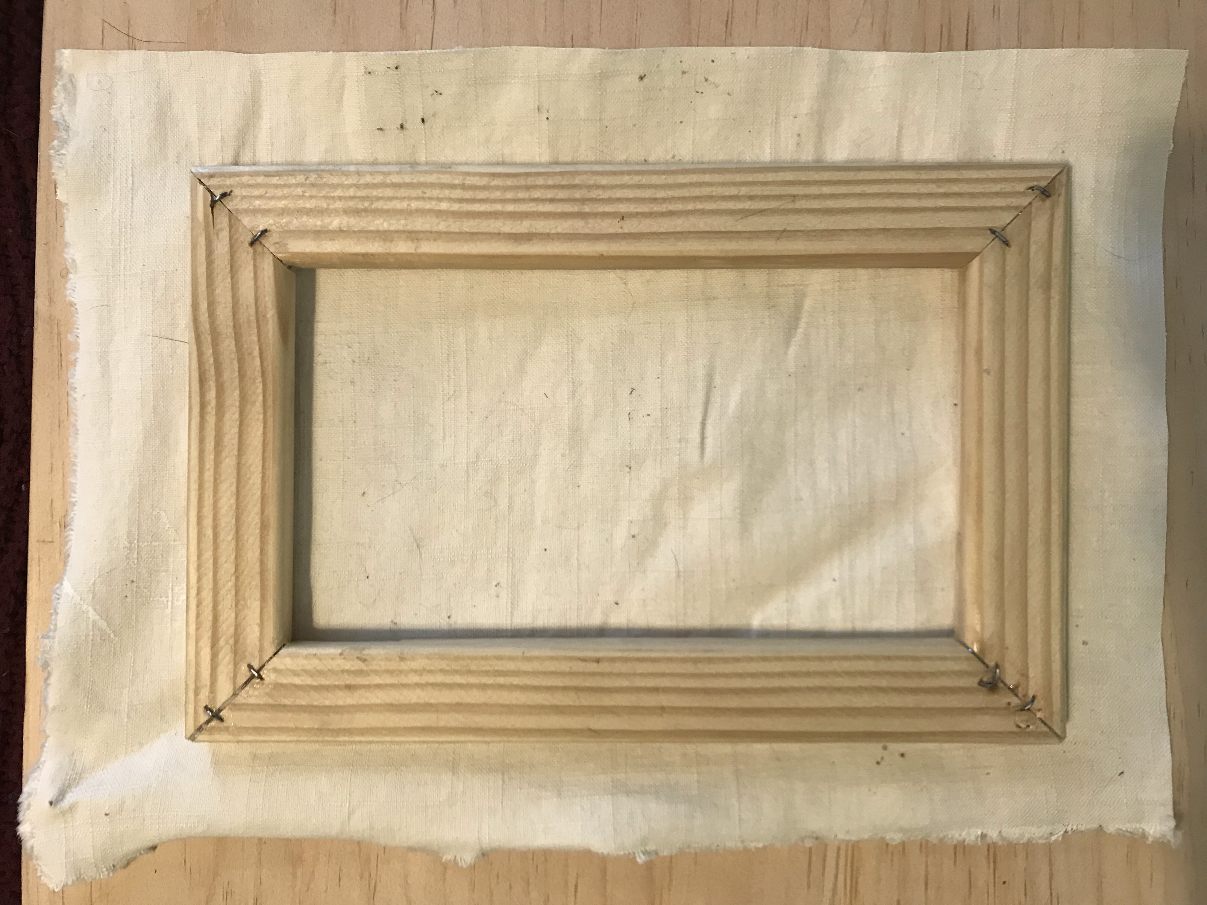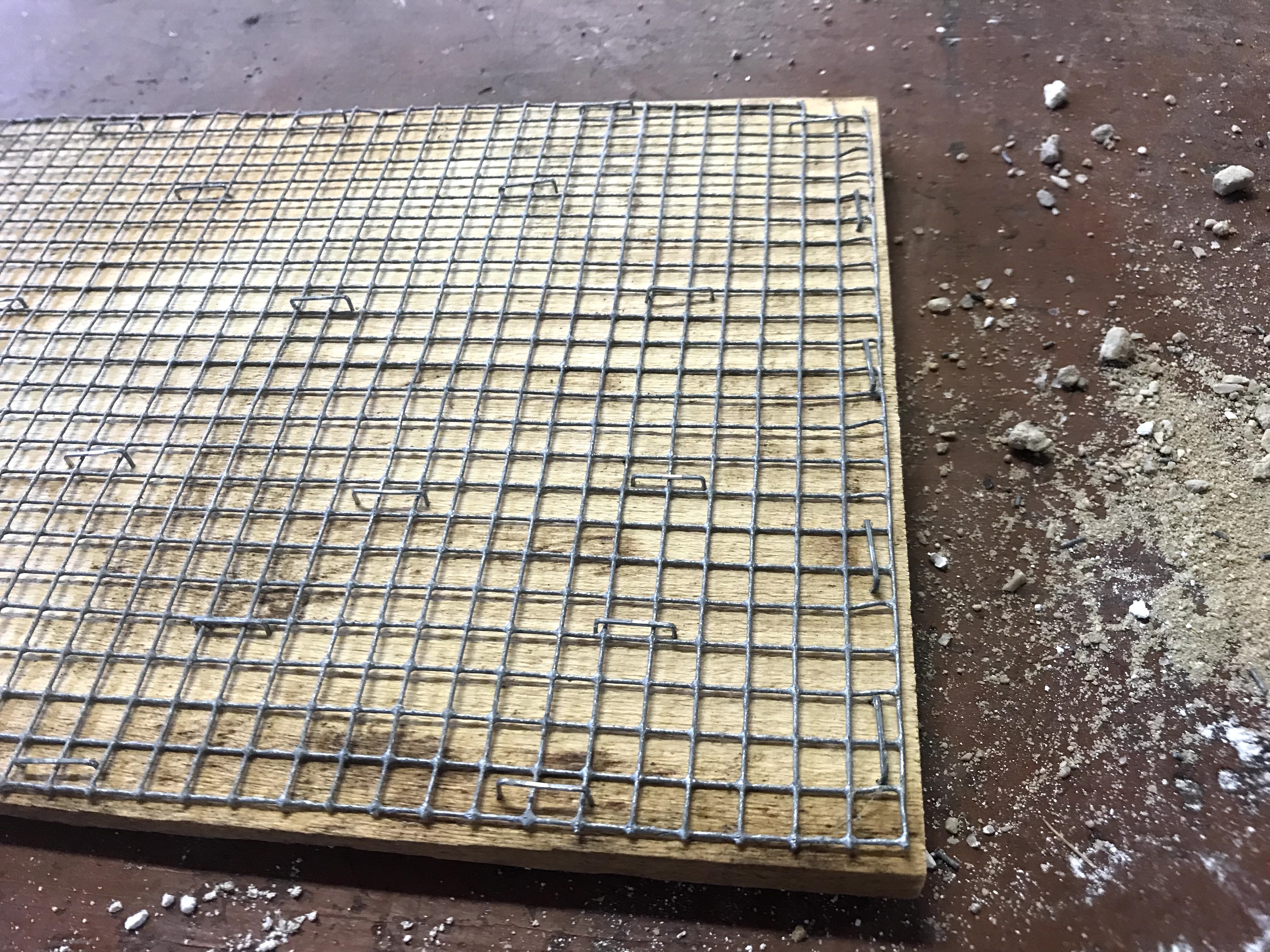 Stapled mesh on cedar panels. Ideally, the panel would be thicker to be less likely to warp from the amount of water required to make frescoes work well, but I’m just working with what I’ve got