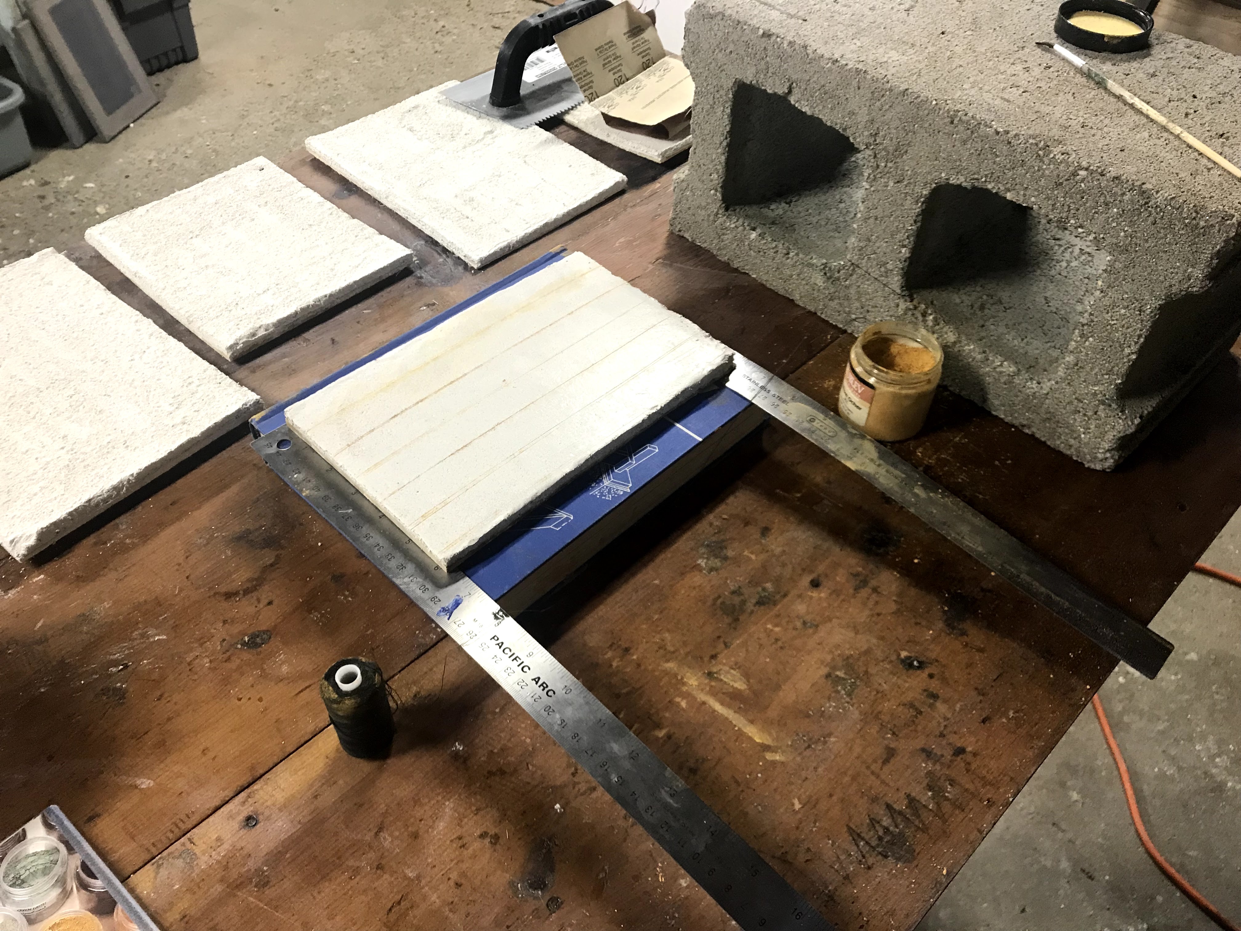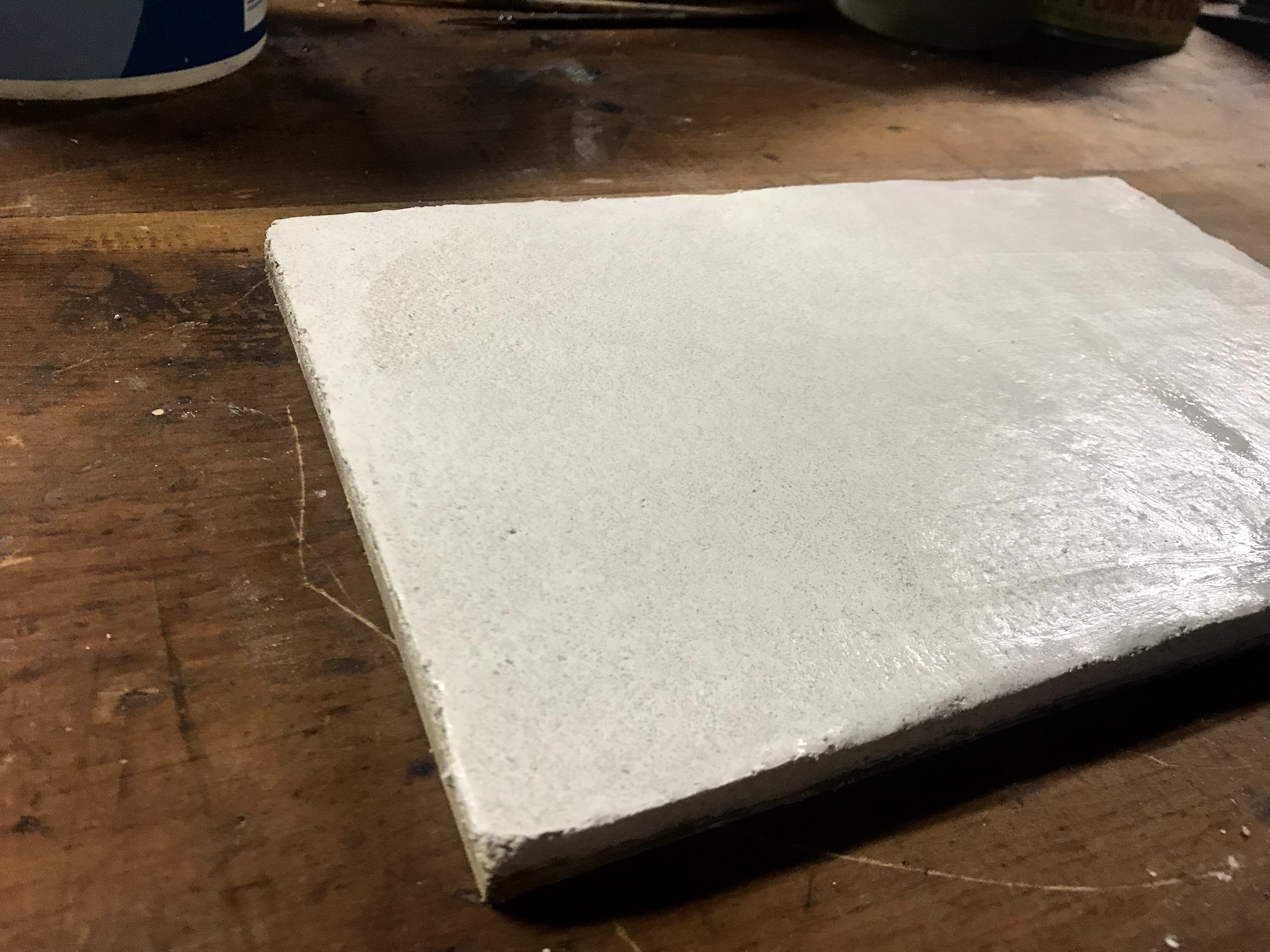 This project is only barely started, as with most other projects here there is a decent amount of waiting that must happen. Time is a material just as much as lime and sand are in this process. The real shock of this project was trying to find plain hydrated lime, because most hardware store just stock cement mix or mortar mix that is in the “just add water” variety. Granted, these mixes might be just lime and sand, but they never say what they’re made of, and I wasn’t about to risk it. The two ingredients in fresco plaster are just lime and sand. The hydrated part of the lime I needed meant that the lime was already slaked and ready for use. If I had gotten straight lime, it would need to be soaked for months before it could be used. Slaked lime, hydrated lime, Type S Lime, and quicklime all refer to the same thing, as far as I can tell. I also needed fine, washed sand, which was also harder to find than I thought, especially when I was looking in summer, when conceivably the most amount of DIY projects would be done needing sand. But I digress. The sand I found was washed but not fine, and I got around this by making a sieve screen out of window mesh. I channeled my archaeology days as I shook out the finer particles into a bucket to combine with the lime. In some recipes, it is suggested to add whiting or marble dust into the final coat of plaster that the pigment gets laid into.