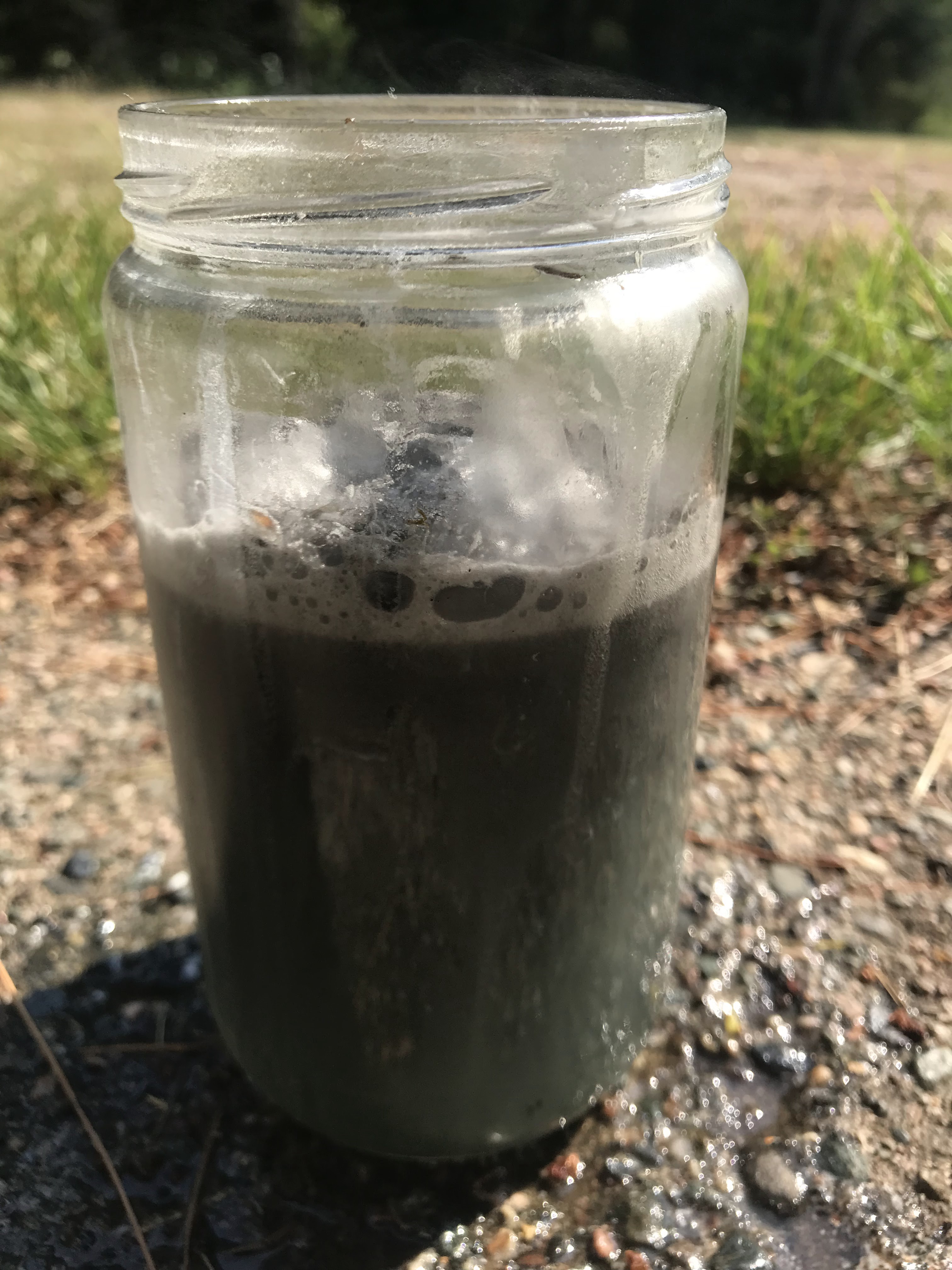 Reacting the steel wool with the sulfuric acidThe iron(II) sulfate precipitate after it settled overnightIron(II) sulfate filtered and ready to use in ink