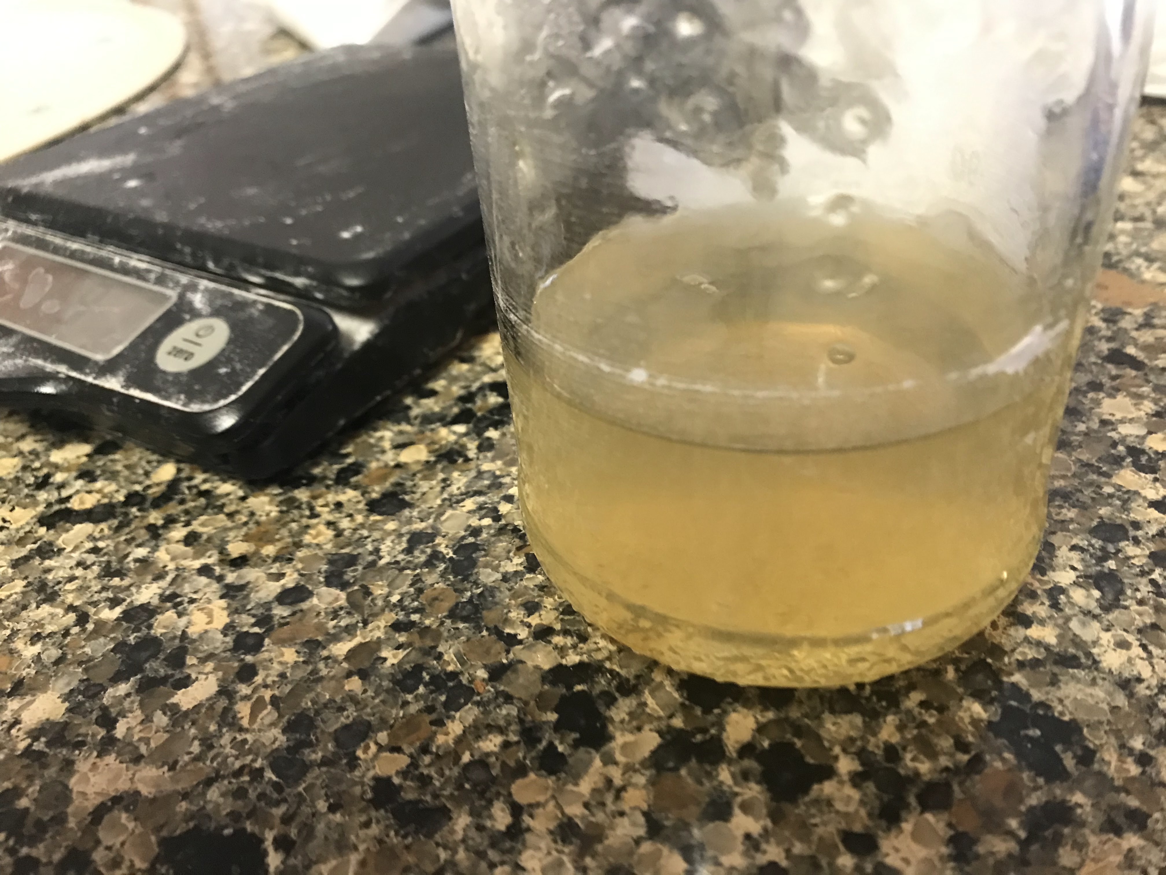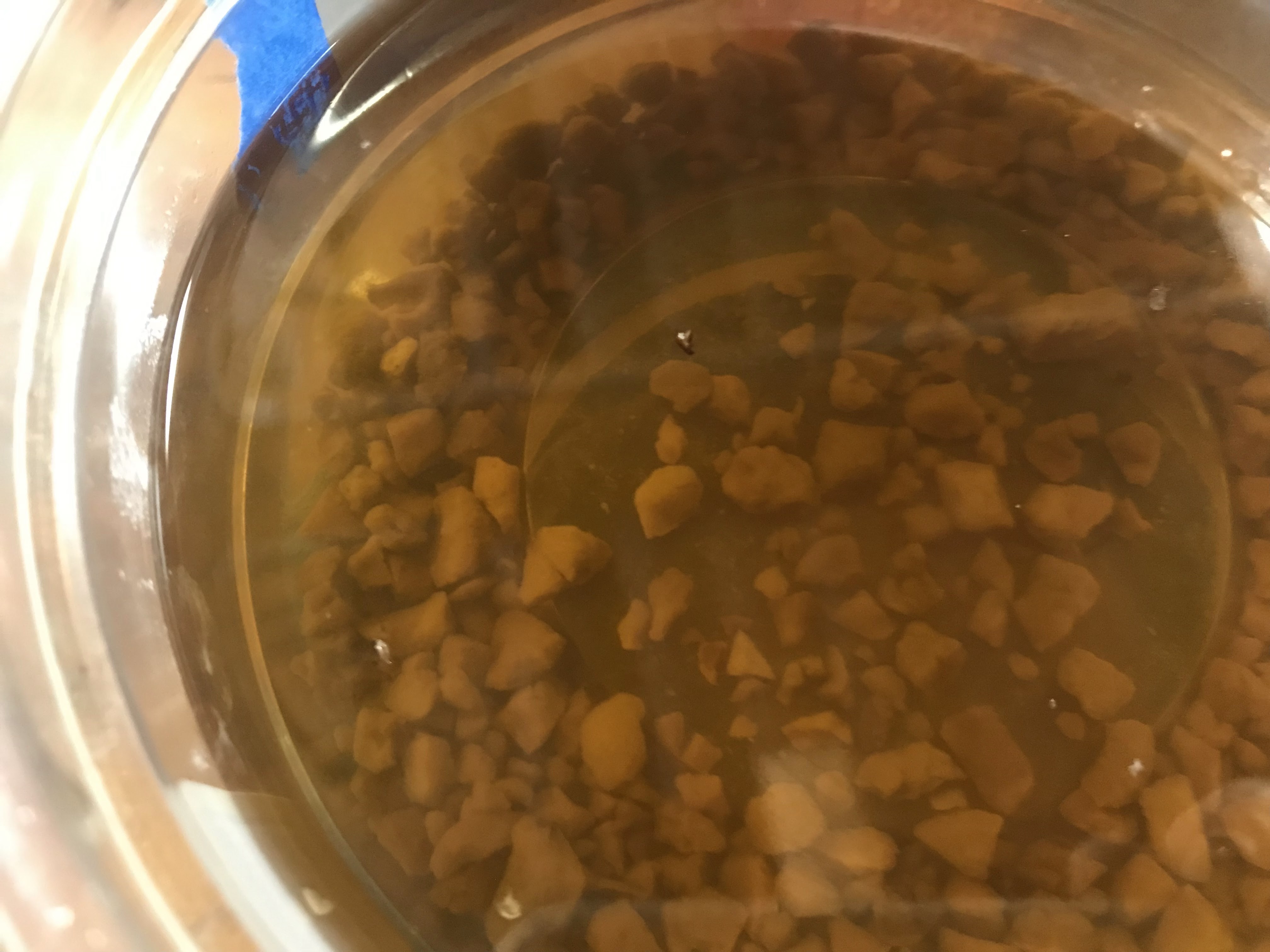 Oak gall soaking in vinegar for the concentrate