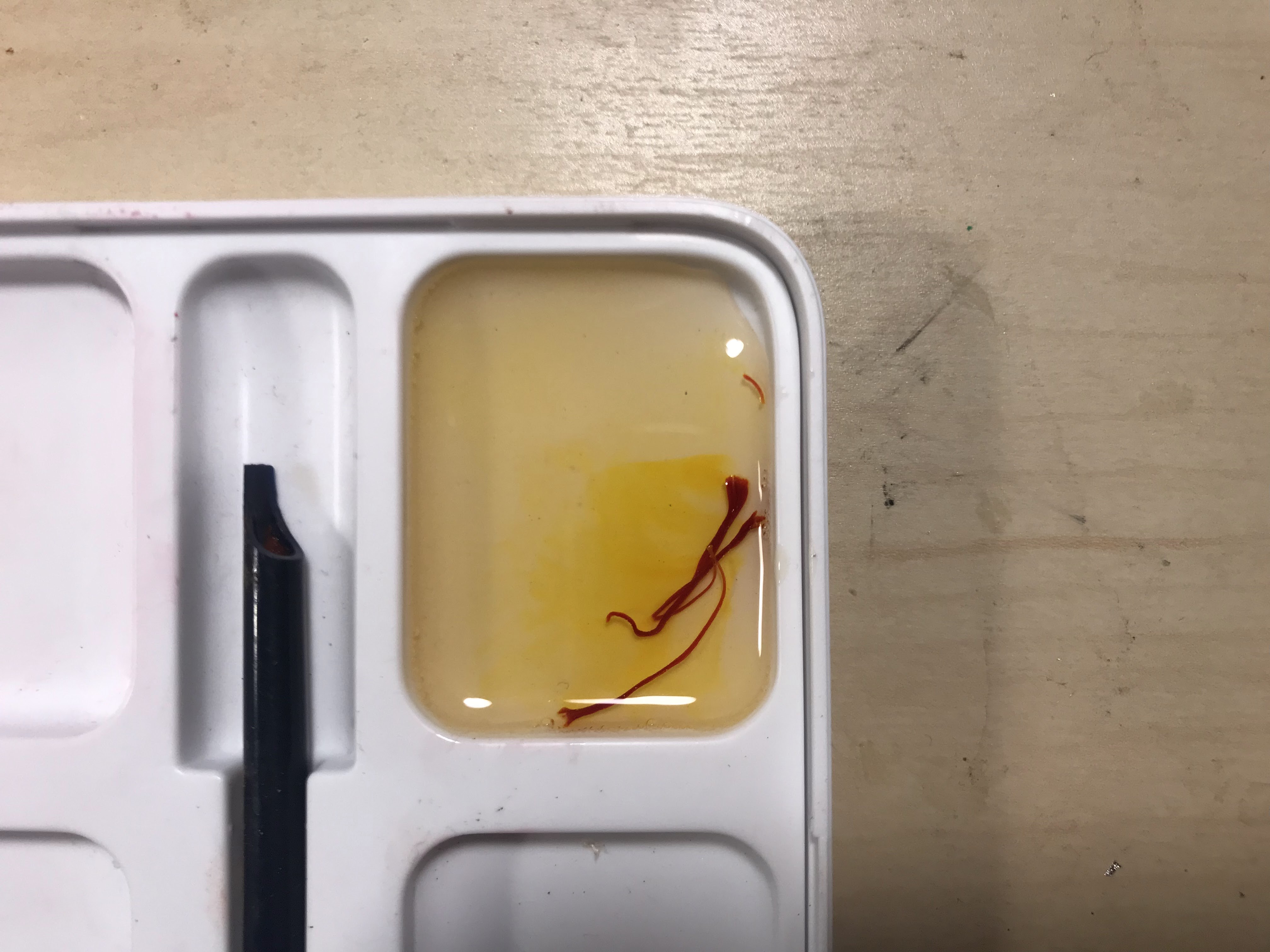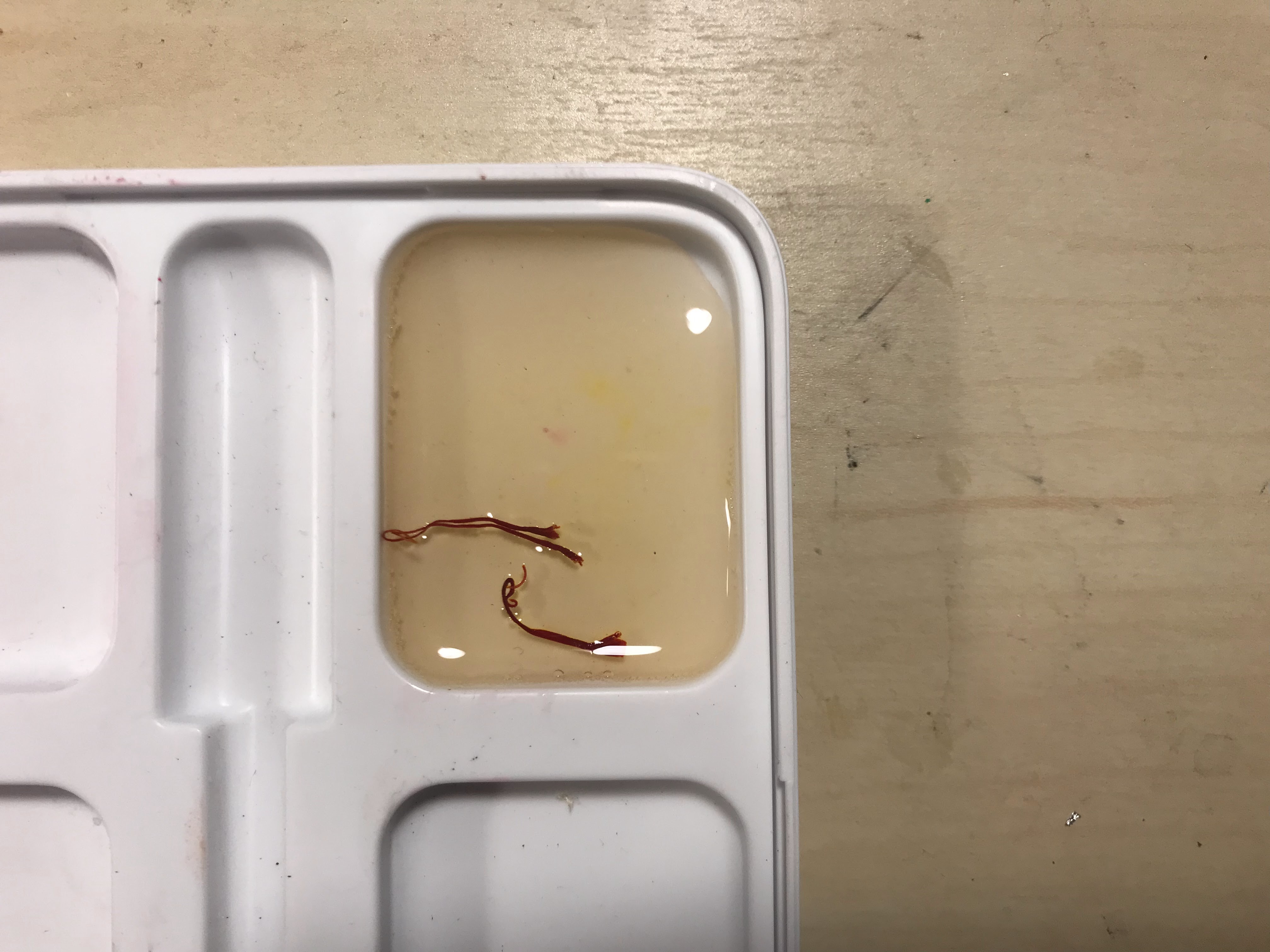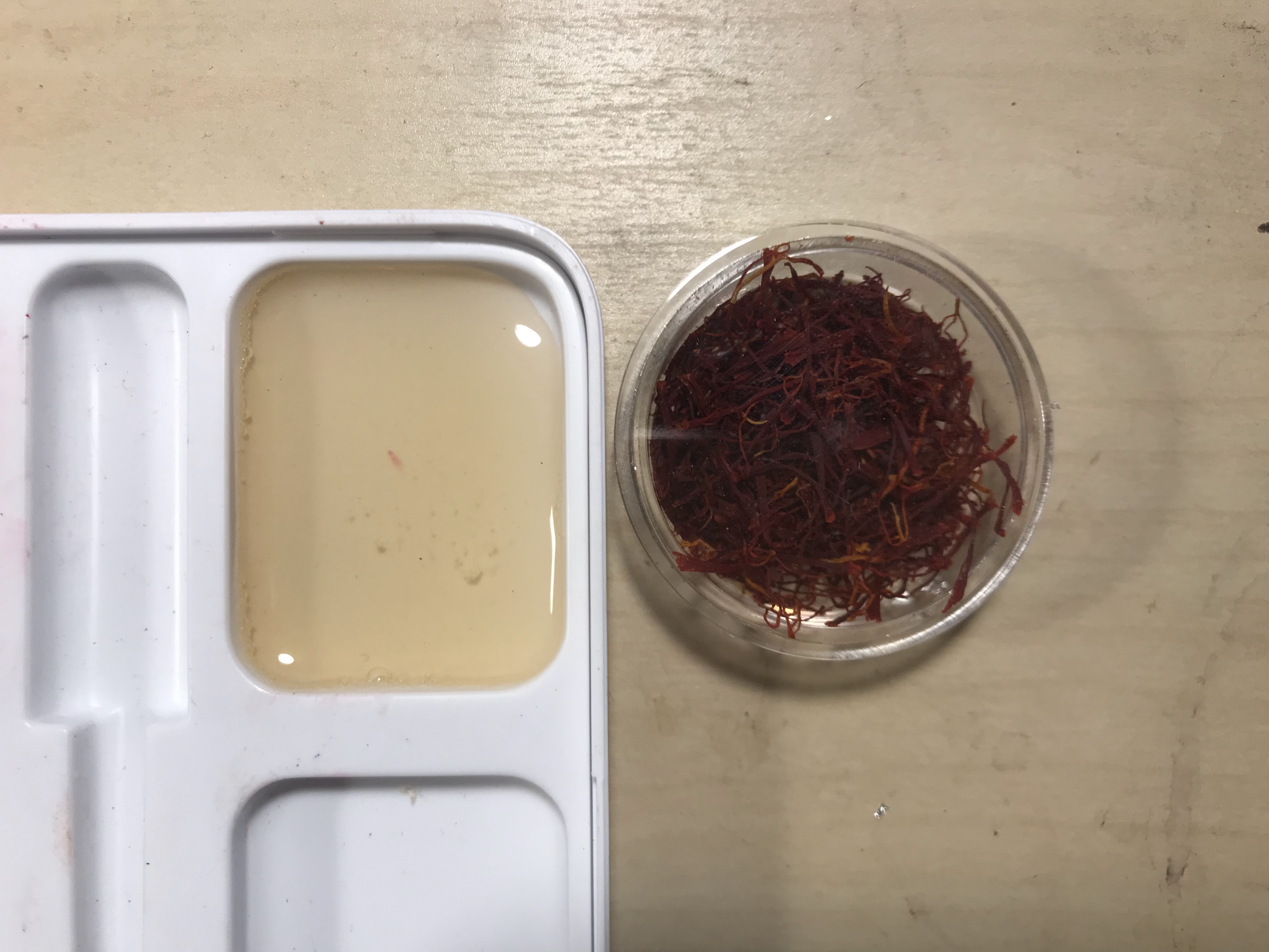 Saffron infusing into glair over time, the final image was after it sat overnight