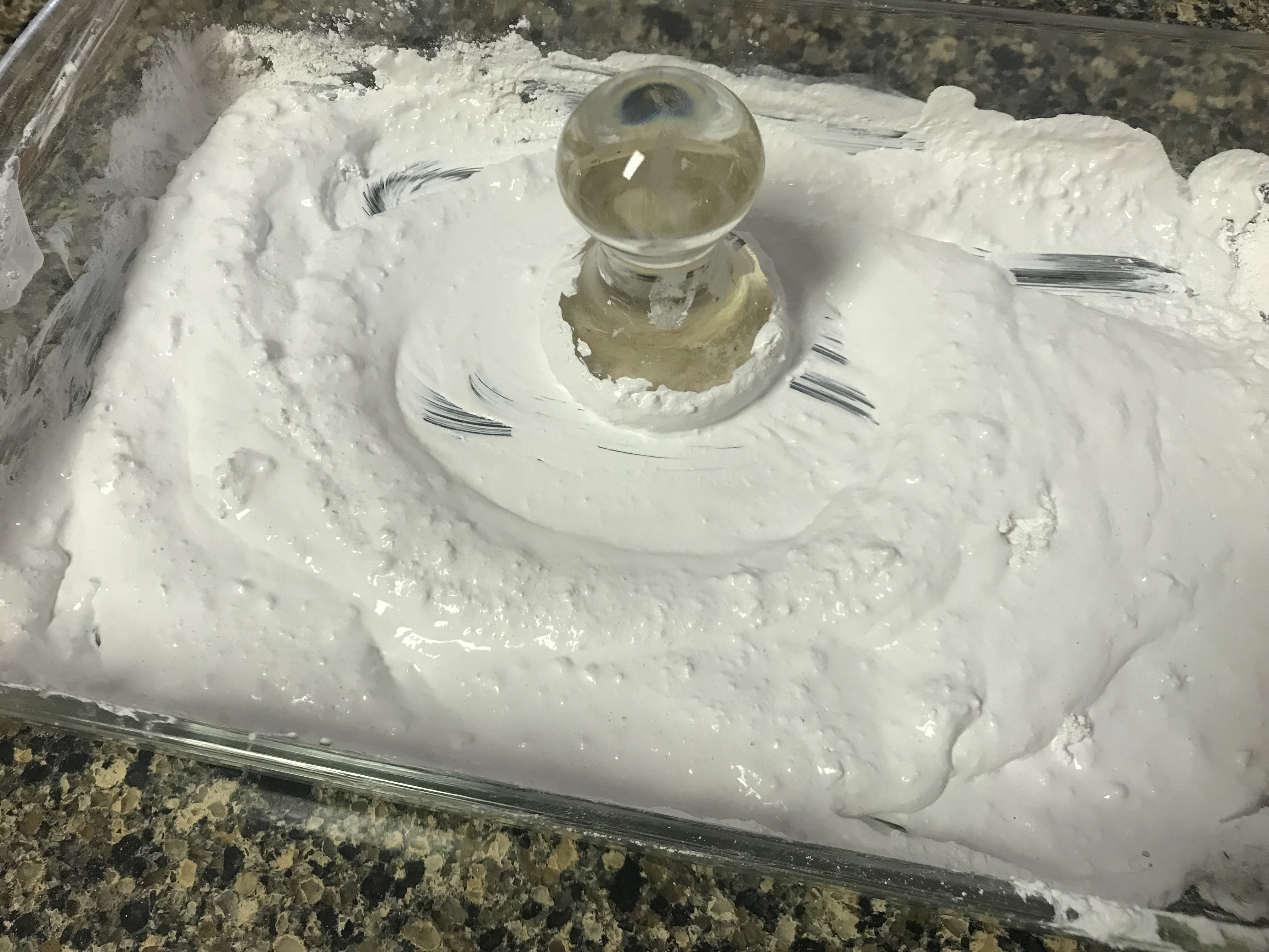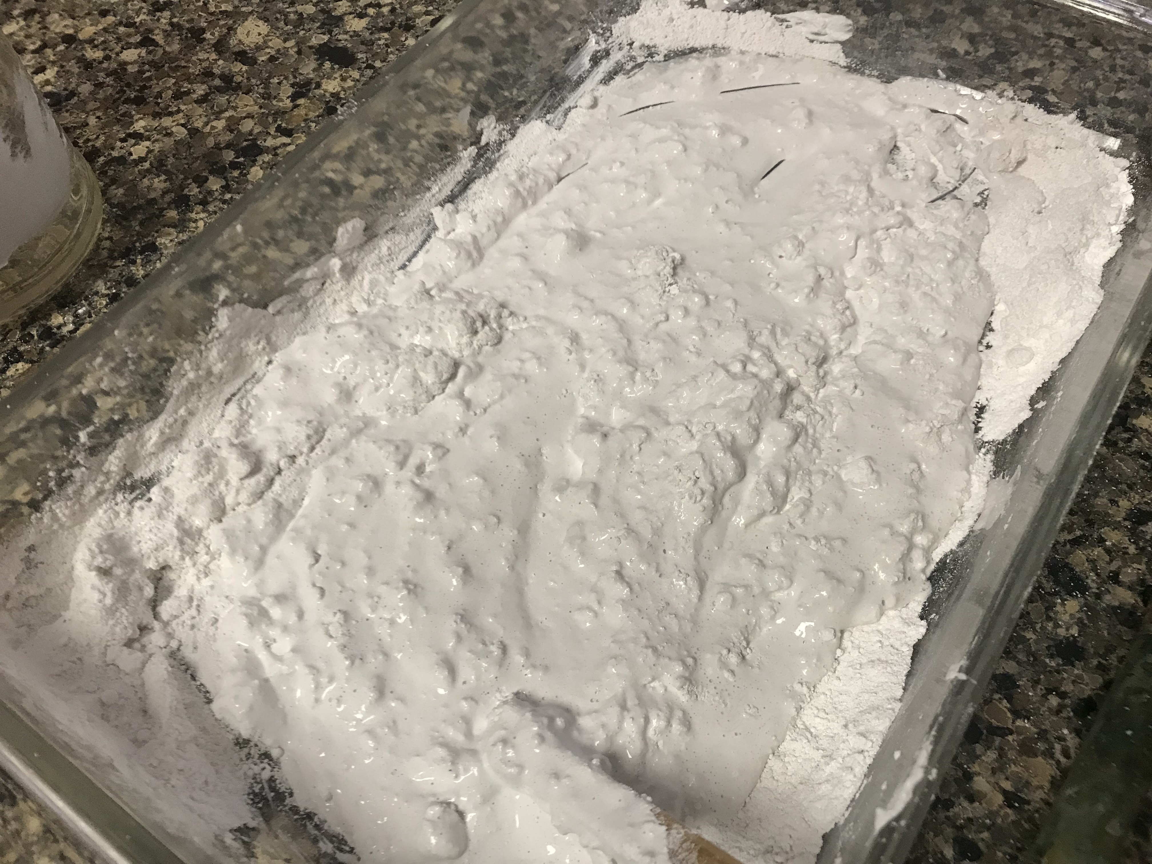 I dissolved the powdered rabbit skin in boiling water. Temperature definitely played a big role in this experiment, and I tried my best to stay on top of it. After the powder dissolves, the glue stays liquid while it is hot, and the glue solidifies at room temperature. It can be reheated and reliquified.