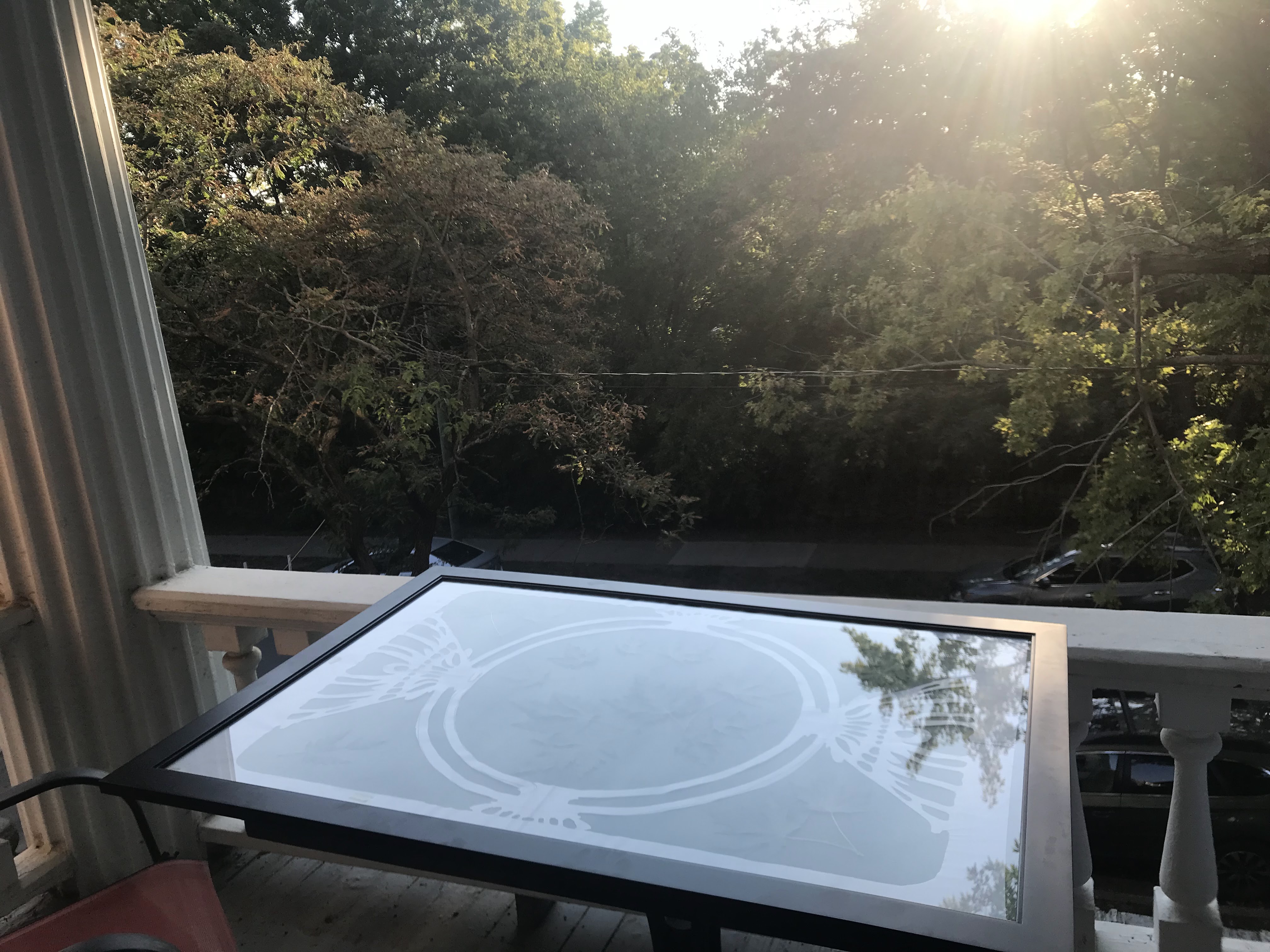 Exposing in the morning sun.The double glass pane method.