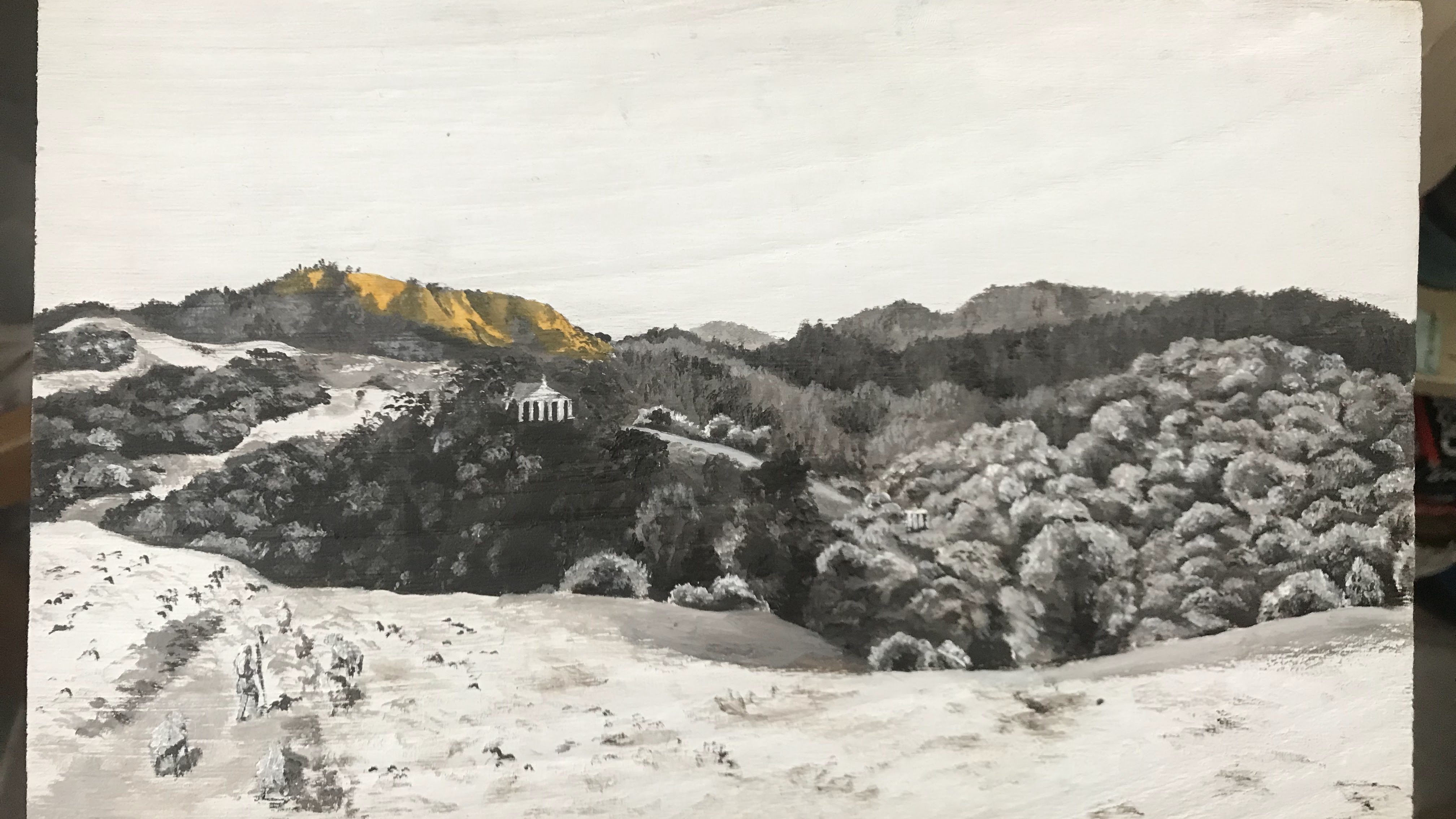 Grisaille with first additions of yellow ochre glaze