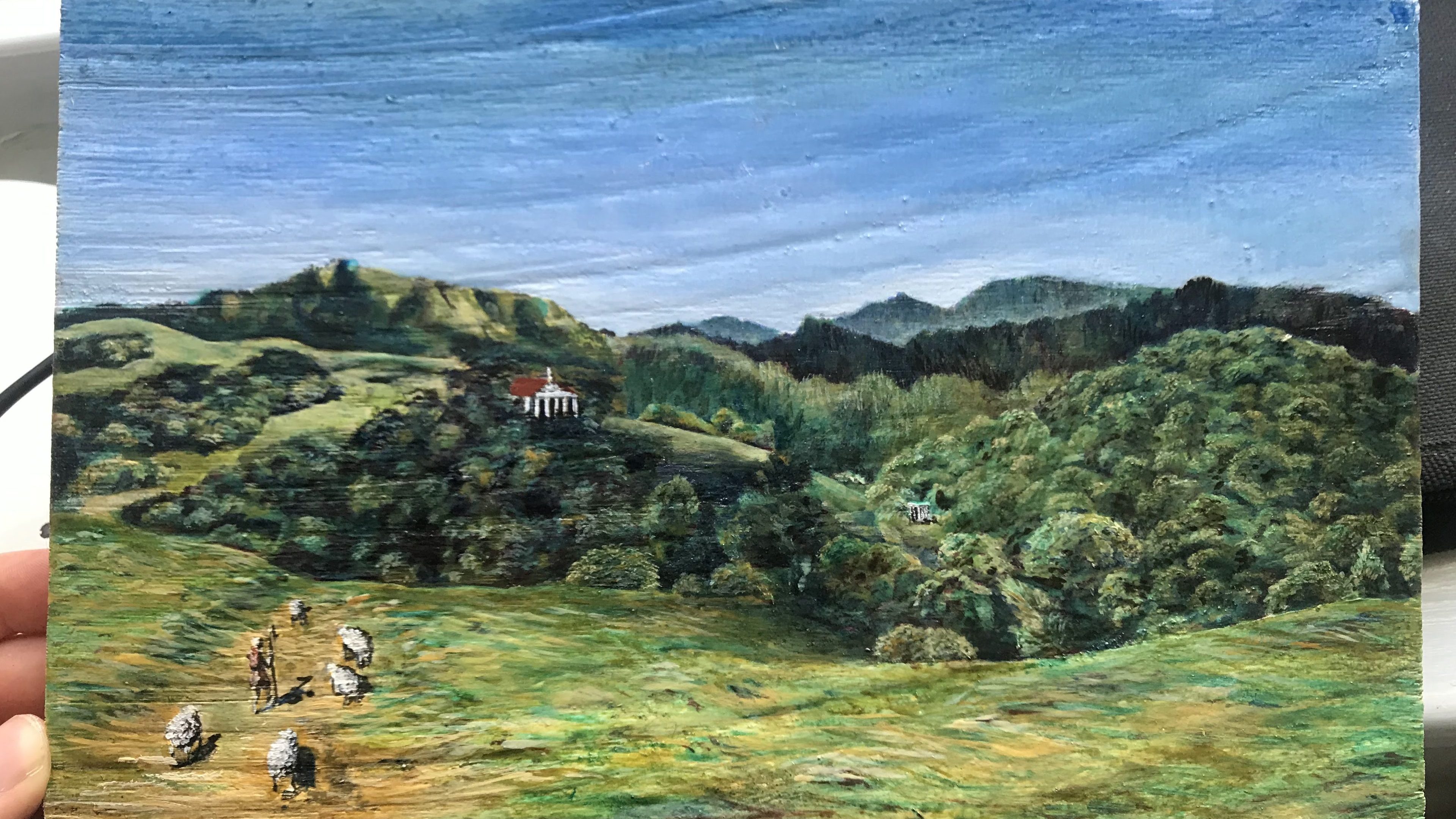 More ultramarine added, opaque highlights added inFinal painting with some edits to the composition and a final verdigris glaze to blend some of the distinct paint strokes